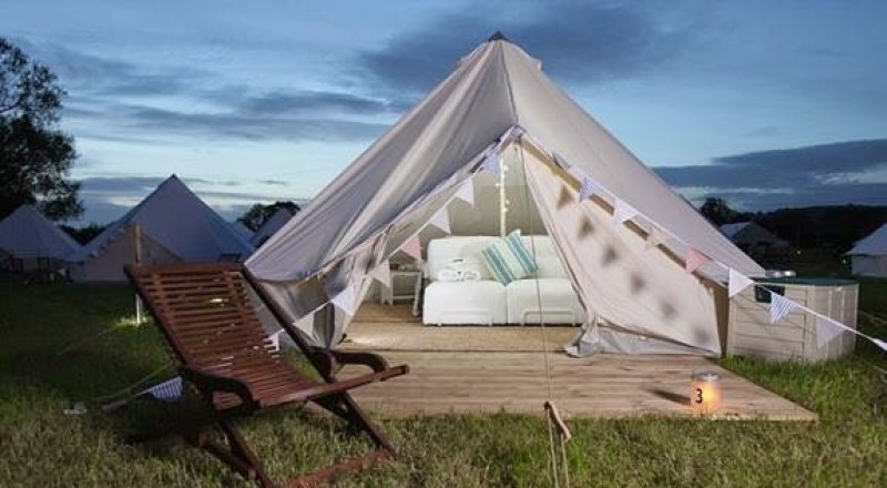 كما وتتضمن الخيم غرف نوم وأخرى المعيشة، وركنات للطعام، وحجرات استقبال، وحمامات فاخرة.ووفقًا لما ذكره المدير العام للفندق "مارك سوريل" لصحيفة "ديلي ميل" البريطانية، فإن فكرة تأسيس الفندق راودته بعد أن قضى 12 عامًا يطور فى منتجع جزر "كايمان" على البحر الكاريبي ، وهو عبارة عن منتجع ذي أكواخ من القش، ومن ثم أراد أن ينقل الفكرة إلى موطنه فى "سومرست" بإنجلترا ويبنى "فندقًا محمولاً" من الخيام.