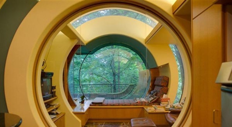 وفقا لما نشرته صحيفة “ديلى ميل” البريطانية، صمم المهندس المعمارى “روبرت هارفى” المنزل 1997 من أجل العميل “روى ويلكنسون” الذي أراد أن يستمع لأصوات الطيور وتغريدها في بيئتها الطبيعية، وبنى المنزل عام 2004 بويست هيلز، بورتلاند، ولاية أريغون الأمريكية، مع تقنية الشكل الأسطواني والأسقف المقوسة وخشب الأرز الذي يحيط بالجدران.