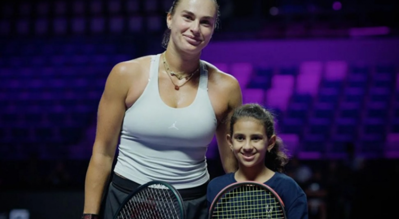 وبينما كانت تواصل الاستعداد للبطولة على ملعب التدريب في صالة جامعة الملك سعود المغلقة هذا الأسبوع، أجرت سابالينكا تمرينا قصيرا مع منافسة لا يزيد طولها عن 1.2 متر: إنها الطفلة سما البكر، البالغة من العمر 9 سنوات، وهي موهبة واعدة من المملكة العربية السعودية.