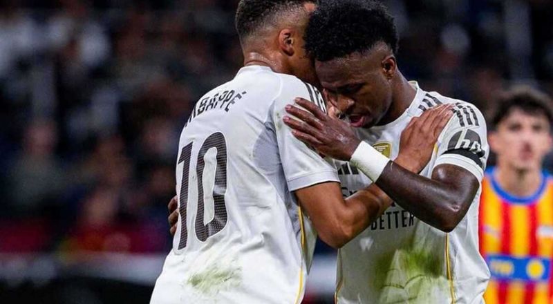 وشهدت تدريبات "الملكي" لقطة طريفة بين الفرنسي كيليان مبابي وزميله البرازيلي فينيسيوس جونيور بعد أن قام مبابي بالرقص أمام فيني بطريقة استفزازية وسط ضحكات زملائه.
