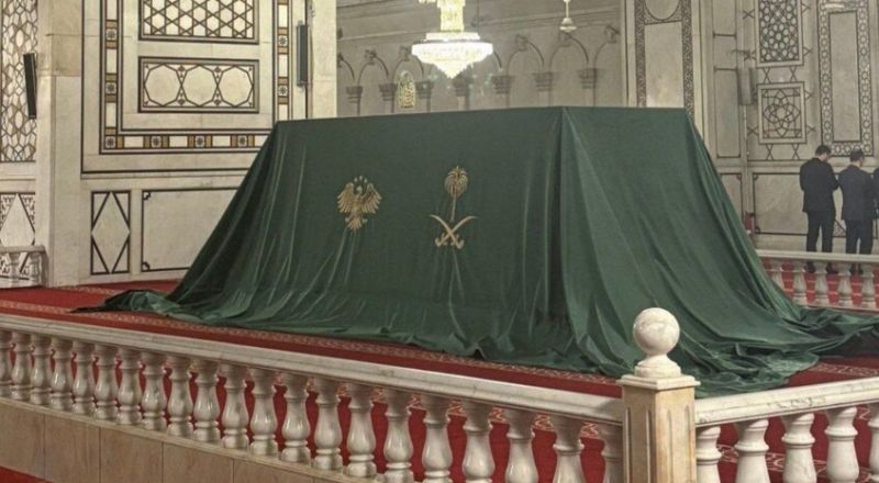 وأعلن الشرع أن ولي العهد السعودي الأمير محمد بن سلمان قدم له قطعة من ستار الكعبة المشرّفة تحمل الآية الكريمة: "وَإِذْ جَعَلْنَا الْبَيْتَ مَثَابَةً لِلنَّاسِ وَأَمْنًا وَاتَّخِذُوا مِن مَّقَامِ إِبْرَاهِيمَ مُصَلًّى"، ليتم وضعها في رحاب المسجد الأموي بالعاصمة دمشق.