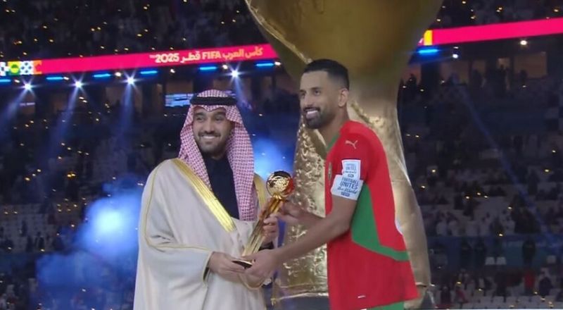 توج نجم المنتخب المغربي محمد ربيع حريمات بجائزة الكرة الذهبية لأفضل لاعب في النسخة الحادة عشرة من بطولة كأس العرب 2025، التي اختتمت اليوم الخميس، في قطر.
