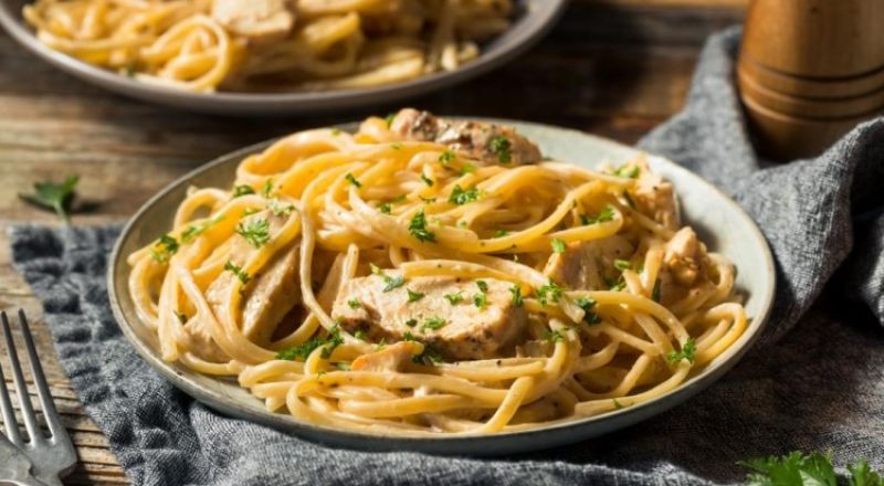 لنجويني تشكن من أشهى أطباق الباستا الإيطالية، يجمع بين الدجاج المتبل، صوص الكريمة الغني، ومكرونة اللنجويني الرقيقة. وصفة سهلة وسريعة، مثالية كوجبة غداء للعائلة، وبالأخص للأطفال.