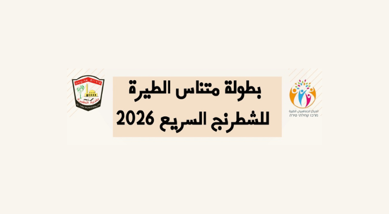 أعلن متناس الطيرة، بالتعاون مع بلدية الطيرة والمركز الجماهيري، عن تنظيم بطولة متناس الطيرة للشطرنج السريع 2026، وذلك بمناسبة افتتاح دوري الشطرنج وبداية العام الجديد، وتشمل البطولة فئتين تصنيفيتين مختلفتين تُقامان في اليوم نفسه.
