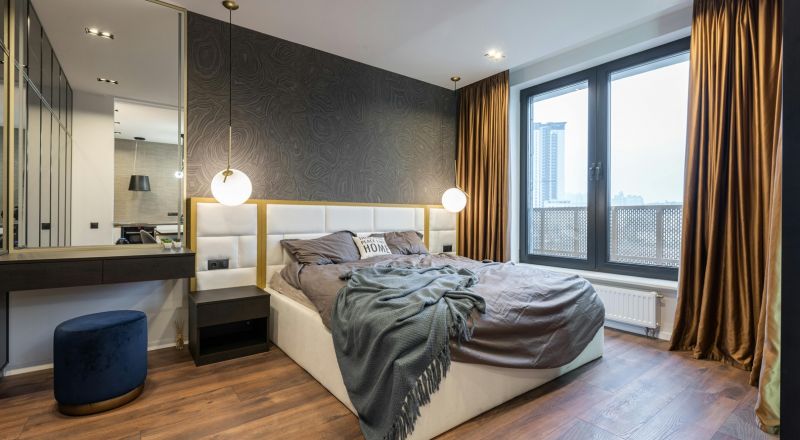 يعتبر الجمع بين أرضية داكنة وجدران فاتحة من أكثر الطرق شيوعاً لإضفاء تباين عصري وجاذبية بصرية. مثال ذلك استخدام أرضية رمادية داكنة أو فحمي مع جدران بيضاء أو بيج. هذه الاستراتيجية تمنح الغرفة إحساساً بالاتساع والثبات بصرياً، بينما قد يؤدي التشابه المفرط بين الأرضية والجدران إلى مظهر باهت.