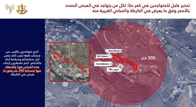 جاء التحذير بالتزامن مع غارات تستهدف مواقع لحزب الله في محيط قرية سحمر، وفق ما ورد في المادة.